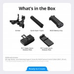 Com os familiares encaixes rápidos de camada dupla do seu antecessor, o RS 5 facilita a montagem e o equilíbrio da sua câmara. A placa horizontal foi redesenhada para transições mais rápidas para a filmagem vertical nativa. Um botão de ajuste fino ajusta o eixo de inclinação para mover a sua câmara para a frente ou para trás. A placa superior adicionou guias de posicionamento para uma montagem segura da câmara.