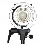 Godox MS300 Monolight: Com um número de guia de 58, o MS300 Monolight da Godox é um flash com balanceamento de luz para dia (5600K), que oferece recursos sólidos de conveniência e núcleo por um preço acessível. A cabeça possui um tempo de reciclagem de 0,1-1,8 segundos com durações de flash tão curtas quanto 1/2000 segundos. A potência é variável de 1/32 à potência máxima, ajustável em 50 passos, enquanto a luz de modelagem de 150W é ajustável de 5 a 100% para permitir visualizar os seus efeitos de iluminação. As configurações são acessivas através dos botões do painel traseiro e exibidas no LCD de fácil leitura. O disparador incluem cabo de sincronização, botão de teste e disparo tipo "slave". O MS300 possui um sistema de rádio interno de 32 canais, possibilitando o controlo da função sem fio, com a compra separada do transmissor XT16, X2, X1 ou XPro. A cabeça também possui uma função anti-pré-flash que facilita o trabalho com câmaras compactas e outras câmaras que utilizam pré-flash. O MS300 pesa 2.60Kg, incentivando a montagem de um kit com duas ou mais cabeças sem ter que carregar uma mala pesada. O MS300 possui um suporte de acessórios dianteiro Bowens, permitindo o uso de modificadores Godox, bem como acessórios de muitos fabricantes que usam este sistema. A cabeça possui um suporte de inclinação e funciona com corrente de 110V a 240V AC.