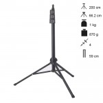 • Intervalo de altura versátil: ajustável de 66,2 cm a 200 cm – para ângulos de filmagem flexíveis.