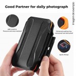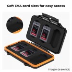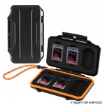 A estrutura em ABS de alta resistência protege contra quedas e impactos, enquanto o anel de vedação em silicone impede a entrada de água, pó e outras partículas. O interior em espuma EVA cortado com precisão garante que cada cartão fique firmemente encaixado, evitando vibrações e danos nos conectores.