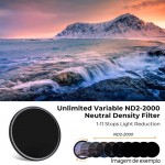 | Densidade Neutra em Stops | 1 - 11 stops (ND2-ND2000) |