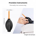 O K&F Concept KF08.045 Soprador de Ar para Limpeza é a solução ideal para remover poeiras e partículas de equipamentos delicados de forma rápida, segura e sem contacto direto. Equipado com um bico longo de precisão, permite alcançar zonas difíceis como sensores de câmaras, lentes, teclados ou dispositivos eletrónicos.