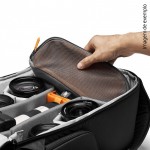 • Espaçosa e com sistema divisor personalizável, acomoda uma câmara sem espelho ou DSLR com uma 70-200mm acoplada mais 3-4 lentes extra ou um drone compacto